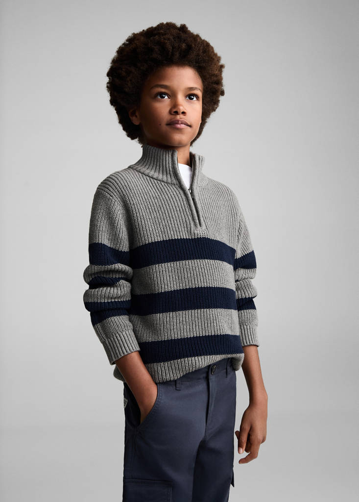 Back to school collection. Fabric with cotton. Long design. Straight design. Cargo design. Two cargo pockets. Jeans with tie closure. Turn-up hem. Zip and button closure