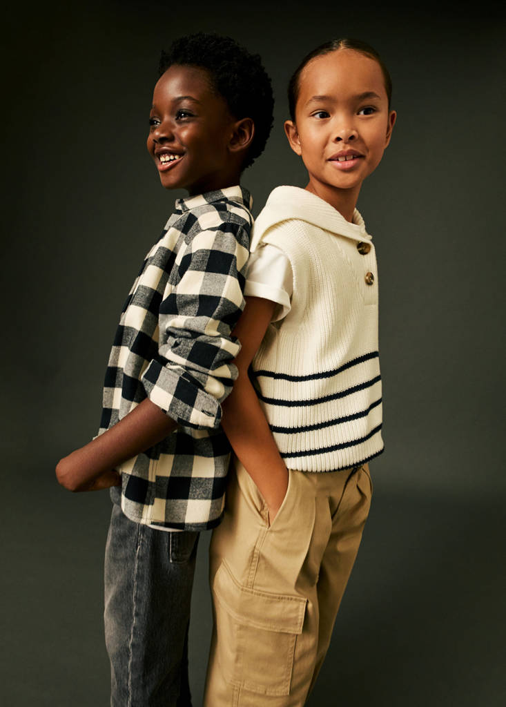 Back to school collection. Fabric with cotton. Straight design. Button closure at the neck. Sleeveless. Striped design