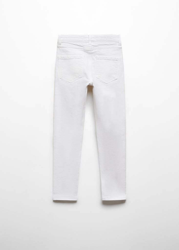Cotton fabric. Straight design. Long design. Mid-rise. Skinny fit. Five pockets. Zip and button closure. Denim-style cotton fabric