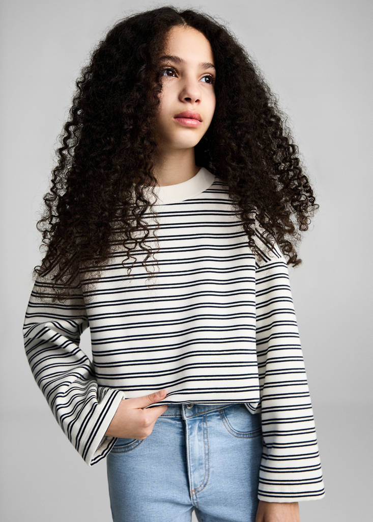 Denim-style cotton fabric. Denim fabric. Straight design. Long design. Flare design. Mid-rise. Jeans with tie closure. Frayed hem. Belt loops. Zip and button closure
