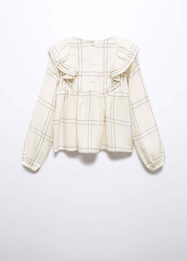 Cotton fabric. Striped print. Frill detail. Round neck. Long sleeves. Button closure at the back