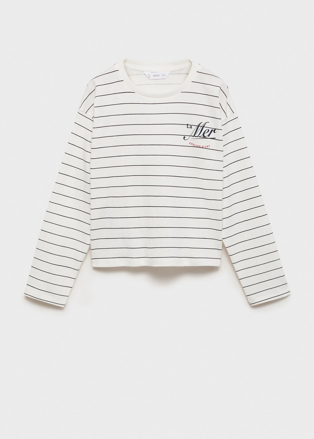 Light Flat Structure. 100% Cotton. Straight design. Striped design. Message printed on the front. Printed message on the back. Round neck with ribbed finish.