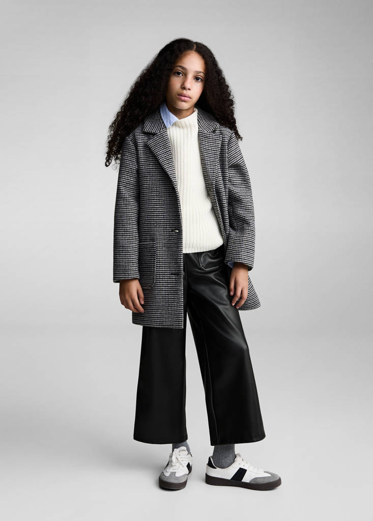 Leather effect. Culotte design. Elastic waistband. Two patch pockets at the back. No closure