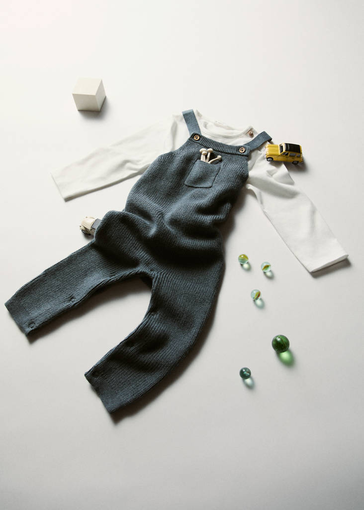 Fabric with cotton. Knit Fabric. Straight design. Long design. Square Neckline. Straps. Patch pocket. Wood effect buttons. Hem slit with button closure. Snap button closure