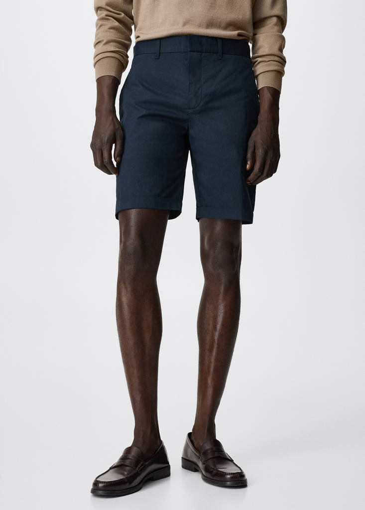 Slim-fit chino cotton bermuda shortsInitial price struck through [US$ 69.99 ]US$ 69.99Current price [US$ 54.99 ]US$ 54.99-21%Select a colourNavySelect your size30 (EUR 38)Not available. I want it!31 (EUR 40)Not available. I want it!32 (EUR 42)Not available. I want it!34 (EUR 44)Not available. I want it!36 (EUR 46)Not available. I want it!38 (EUR 48)Not available. I want it!DimensionsNotify meCotton-blend fabric. Chinos style. Loops. Elastic waist. Side pockets. Zip and one button fastening. The model is 6' and is wearing a size 42Details, composition and careStore availability