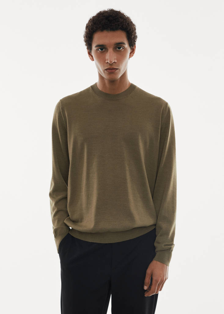 The green and gray models are online exclusives. Performance Collection. Machine washable. 100% merino wool. Fine knit fabric. Round neck. Long sleeves with elastic cuffs. Straight hem with ribbed ends. Thermoregulator: This fabric offers optimal breathability to keep you at a stable temperature. Untrimmed hem. Machine washable. The anthracite gray model is an online exclusive