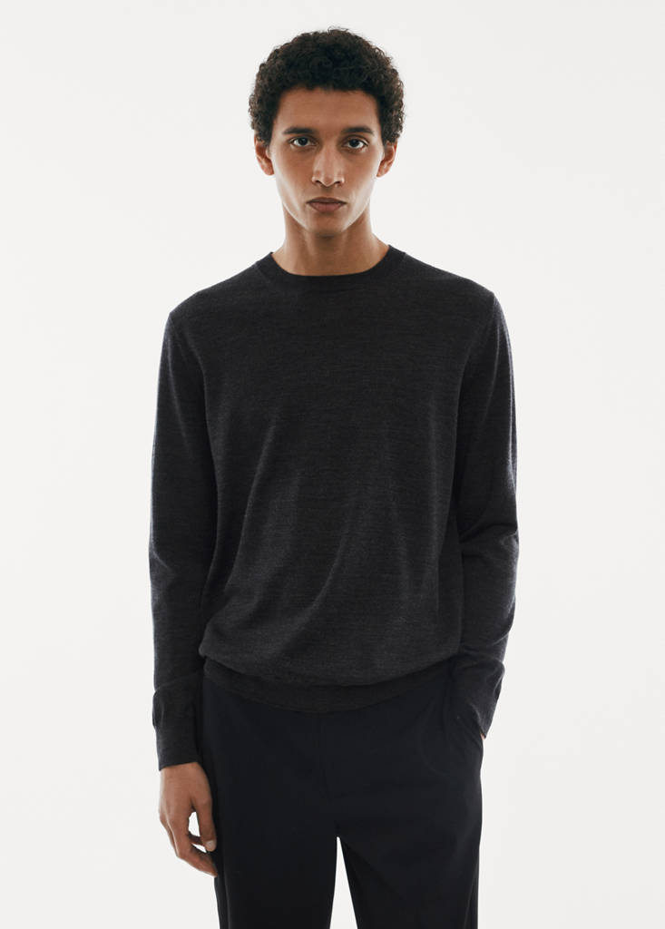 The green and gray models are online exclusives. Performance Collection. Machine washable. 100% merino wool. Fine knit fabric. Round neck. Long sleeves with elastic cuffs. Straight hem with ribbed ends. Thermoregulator: This fabric offers optimal breathability to keep you at a stable temperature. Untrimmed hem. Machine washable. The anthracite gray model is an online exclusive