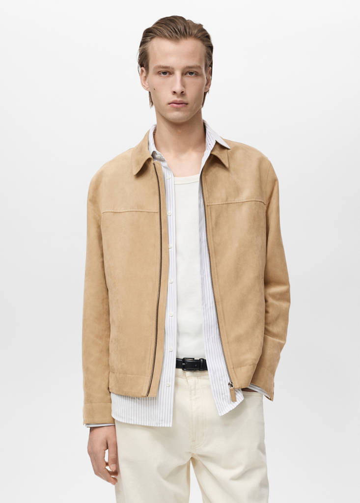Regular fit. Suede faux-leather. Shirt collar. Front zipper closure. Two side welt pockets. Buttoned cuffs. Straight hem