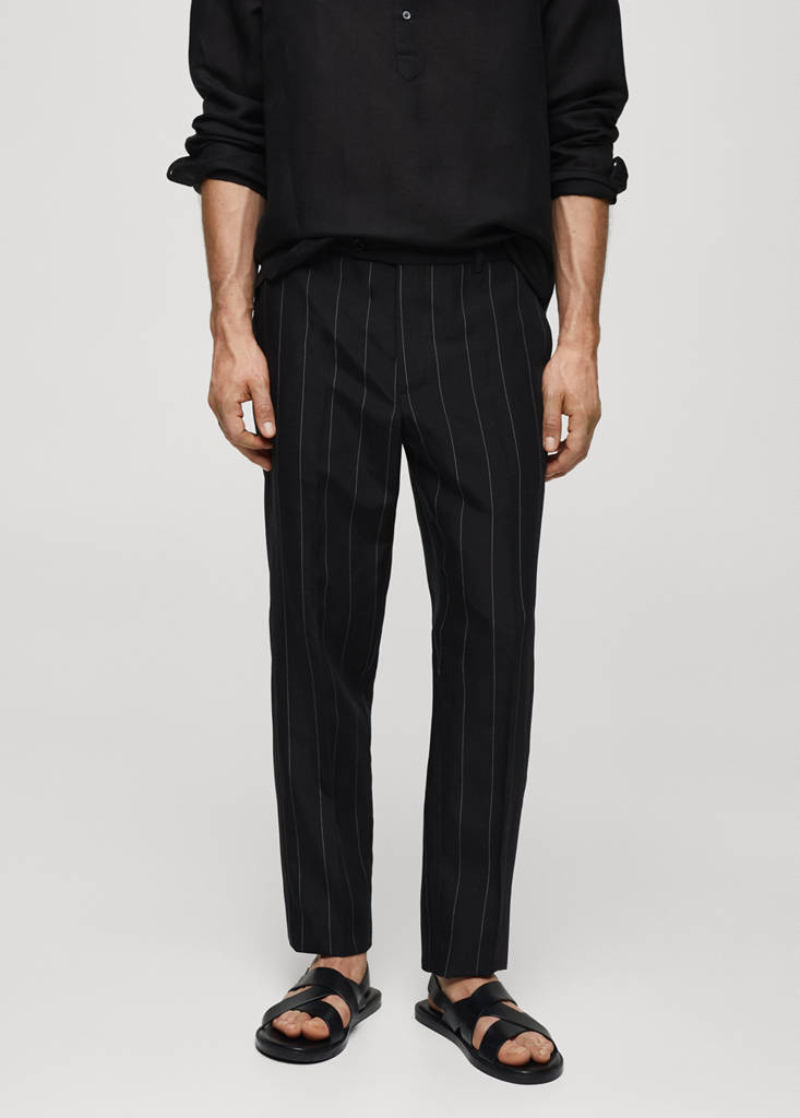 Slim-fit linen pants with pinstripes