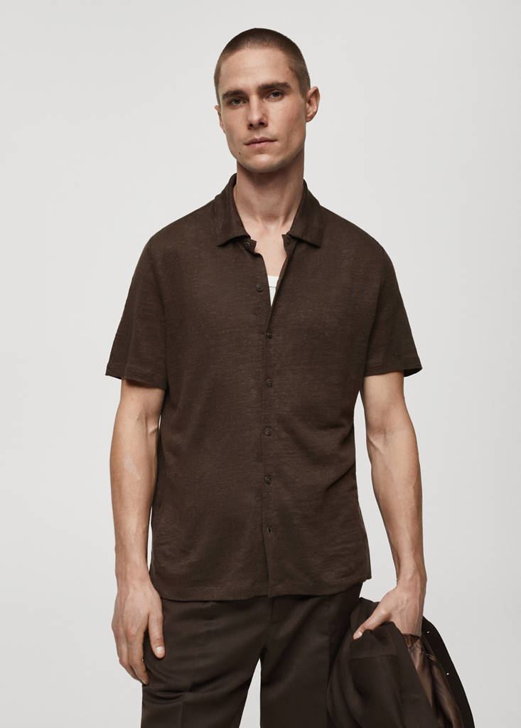 100% linen buttoned polo shirtInitial price struck through [US$ 69.99 ]US$ 69.99Second price struck through [US$ 55.99 ]US$ 55.99Current price [US$ 18.99 ]US$ 18.99-73%Select a colourBrownThe model is wearing size M and is 6'1" tall.Select your sizeXSNot available. I want it!SNot available. I want it!MNot available. I want it!LNot available. I want it!XLNot available. I want it!XXLNot available. I want it!DimensionsNotify meSlim fit. 100% linen fabric. Shirt collar. Short sleeves. Straight hem. Front button closureDetails, composition and careStore availability