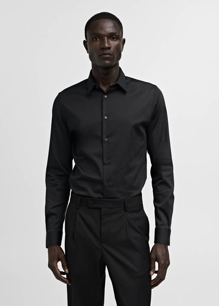 Super slim fit. Cotton poplin. Stretch cotton fabric. Long sleeves with buttoned cuffs. Button closure at the front. Classic collar. Rounded hem. Basics Collection. The beige color is an online exclusive. The green and gray models are online exclusives. Slim fit. Extra fine cotton fabric. Lightweight fabric. Shirt collar. Front closure. Long sleeves. Front button closure