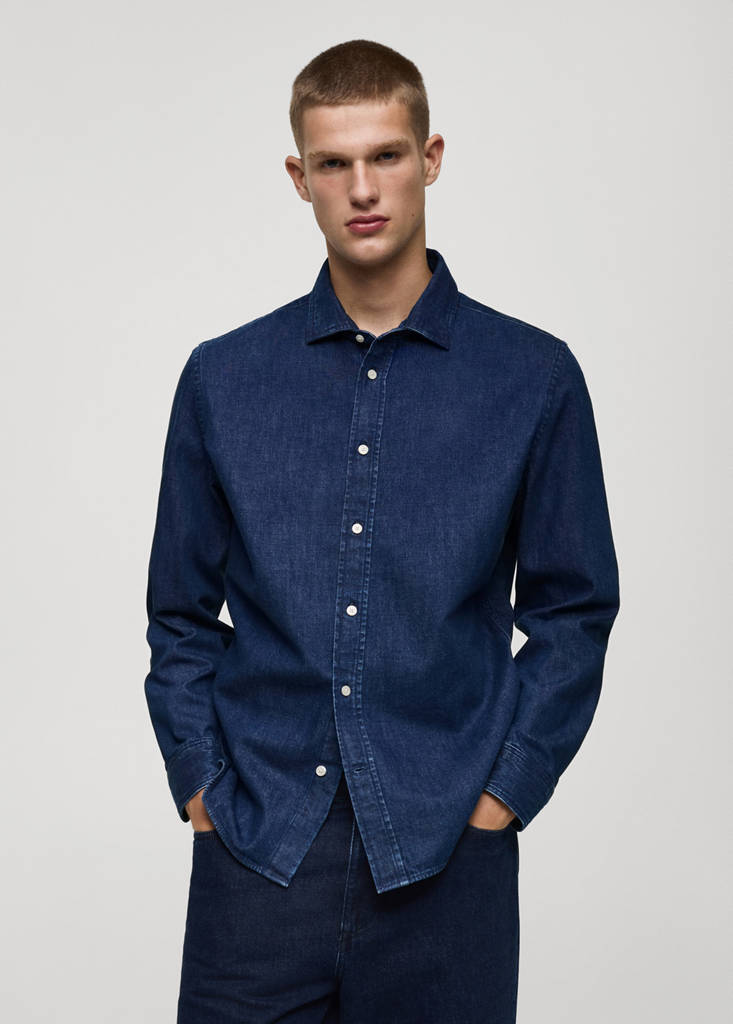 Regular fit. Long sleeves with buttoned cuffs. Double pleat detail on the back. 100% cotton fabric. Front button closure. Rounded hem. Classic collar