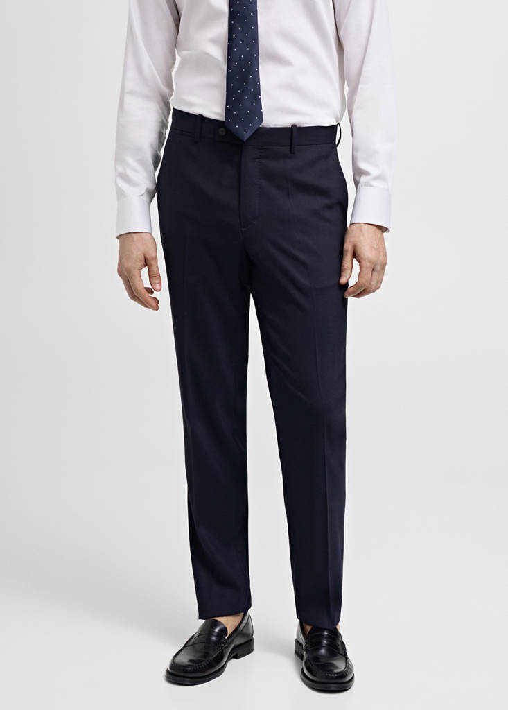 Bi-Strech: bi-directional stretch fabric for added comfort. Wrinkle free: wrinkle-resistant fabric. Slim fit. Wool mix fabric. Herringbone structure. Lightweight fabric. Mid-rise. Belt loops. Button, hook and zipper closure. Two side pockets. Concealed coin pocket at hip level. Two welt pockets with button at the back. Tailoring collection. Thermoregulator: This fabric offers optimal breathability to keep you at a stable temperature. Pressed crease detail on the front and back