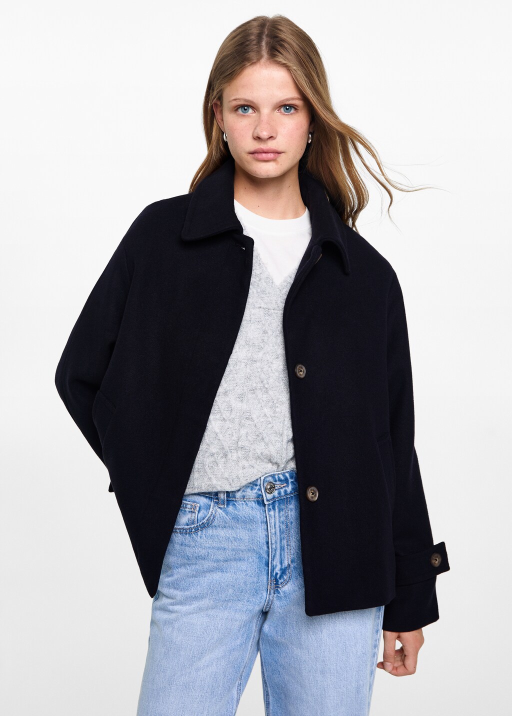 Short cloth coatInitial price struck through [US$ 99.99 ]US$ 99.99Second price struck through [US$ 79.99 ]US$ 79.99Current price [US$ 62.99 ]US$ 62.99-37%Select a colourDark NavySelect your sizeXXSLast few items!XSSLast few items!MLLast few items!XLLast few items!Size guideAddDescriptionStraight Design. Shirt collar. Two side pockets. Long sleeves with buttoned cuffs. Concealed button fastening.See detailsShare