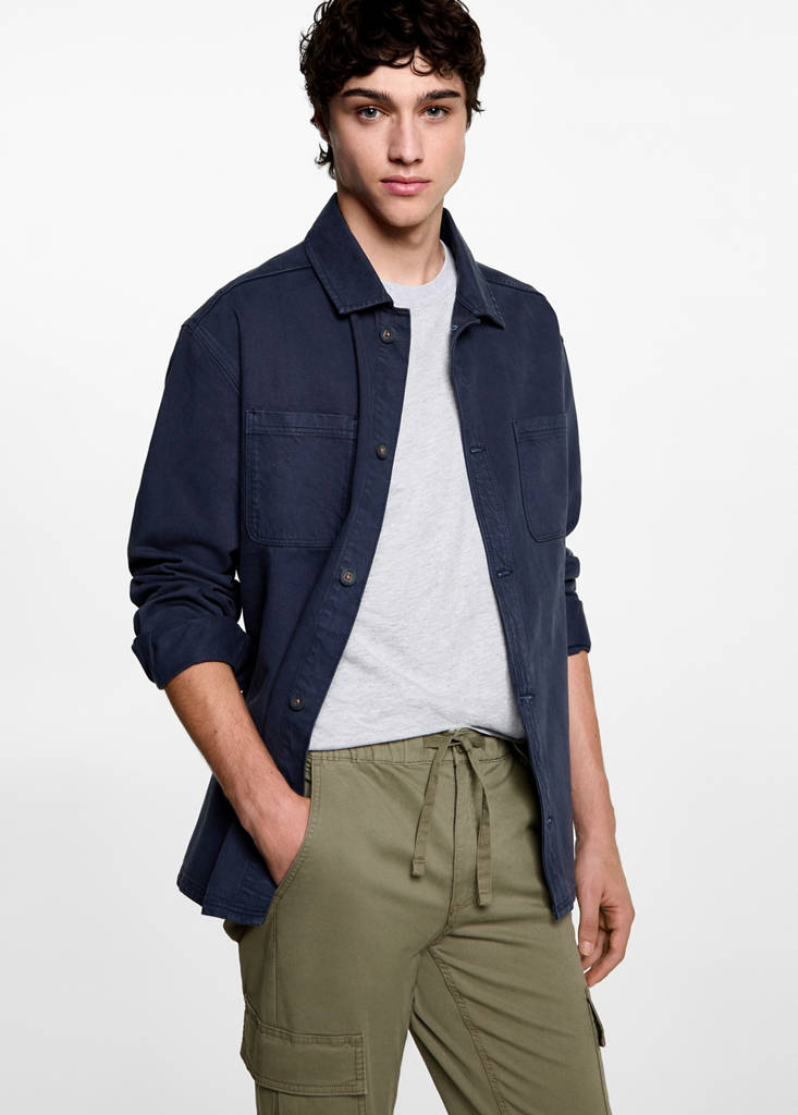 Jogger design. Elastic waistband with adjustable drawstring. Long design. Jeans with tie closure. The model is 5'9" and is wearing a size M. Fabric with cotton. Two cargo pockets