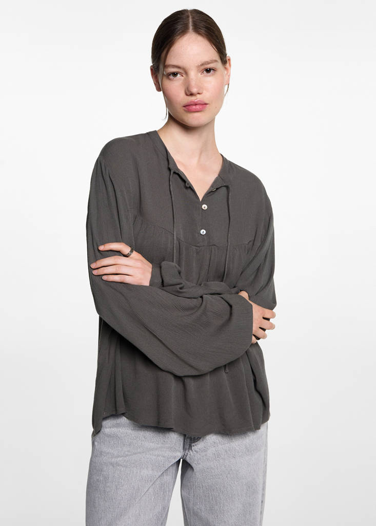Fluid blouse with neck tie