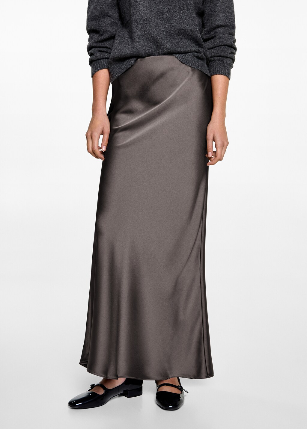 Party collection. Fluid fabric with satin finish. Flared design. Long design.