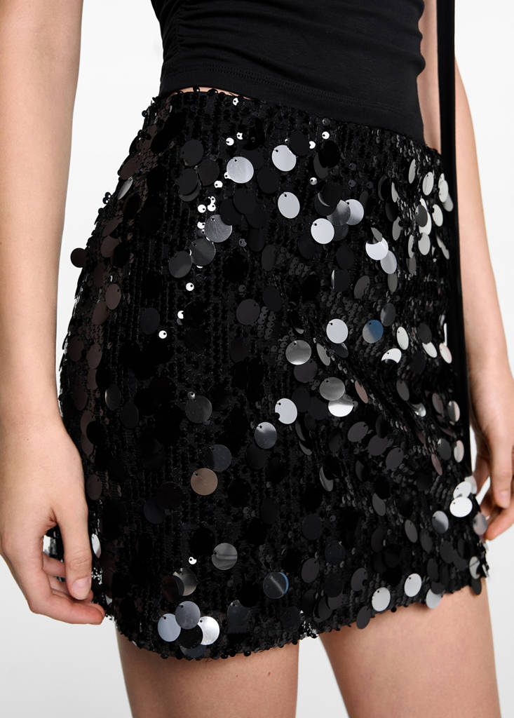 Sequin fabric. Short design. Straight design. Inner lining. Side closure. Party and events collection. Party Collection
