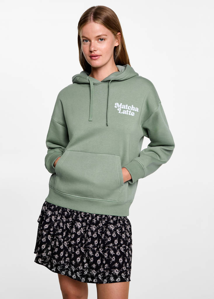 Back to class. Fabric with cotton. Straight design. Embroidered message. Hood with drawstring. Pouch pocket