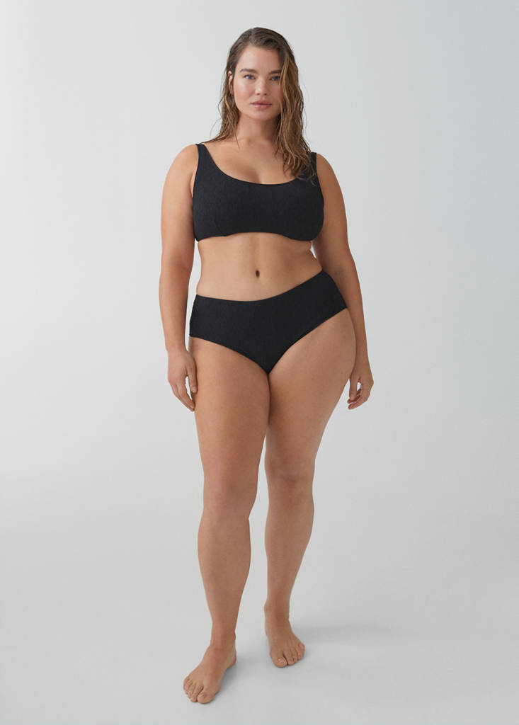 Textured fabric. High-rise. Elastic waistband. Inner lining. Available set. Available Plus. Bath collection