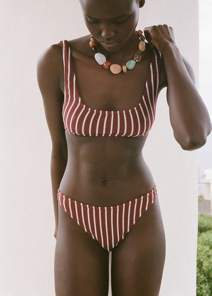 Top bikini canalé rayas