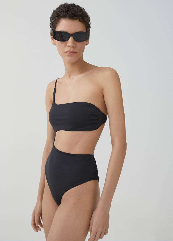 Swimsuit with asymmetrical openingInitial price struck through [US$ 89.99 ]US$ 89.99Second price struck through [US$ 62.99 ]US$ 62.99Current price [US$ 25.99 ]US$ 25.99-71%Select a colourBlackThe model is wearing size S and is 5'9" tall.Select your sizeXSNot available. I want it!SNot available. I want it!MNot available. I want it!LLast few items!DimensionsAddAsymmetric design. Thin strap. Side slit. Removable foam. Inner lining. Bath collectionDetails, composition and careStore availability