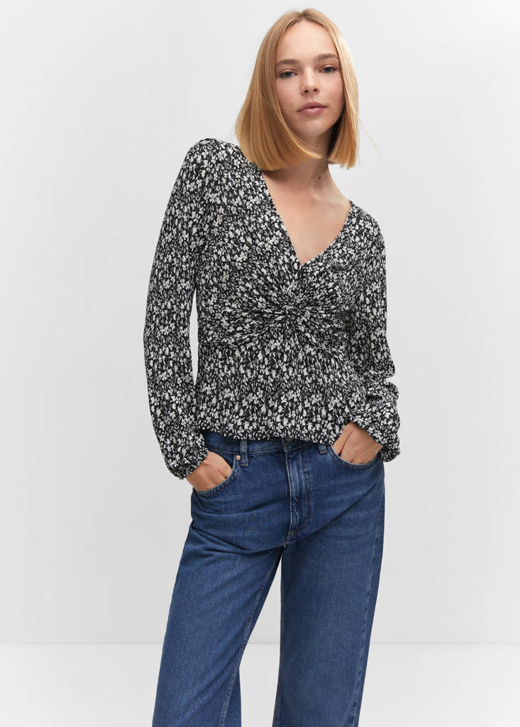 Knot detail printed blouseInitial price struck through [US$ 45.99 ]US$ 45.99Second price struck through [US$ 31.99 ]US$ 31.99Current price [US$ 8.99 ]US$ 8.99-80%Select a colourBlackThe model is wearing size S and is 5'9" tall.Select your sizeXXSLast few items!XSNot available. I want it!SNot available. I want it!MNot available. I want it!LNot available. I want it!XLNot available. I want it!XXLNot available. I want it!MeasurementsAddTextured fabric. Straight design. V-neck. Long sleeves. No closure. Knot detail. Printed designDetails, composition and careStore availability