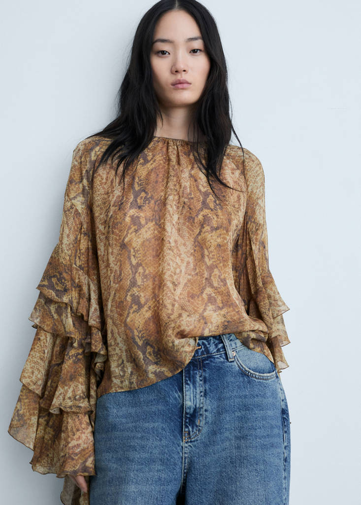 Ruffle blouse with snake print