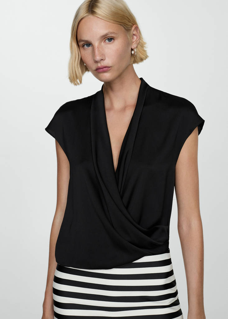 Sleeveless wrap blouseInitial price struck through [US$ 49.99 ]US$ 49.99Current price [US$ 10.99 ]US$ 10.99-78%Select a colourBlackThe model is wearing size 4 (EUR S) and is 5'10" tall.Select your size0 (EUR XXS)Not available. I want it!2 (EUR XS)Not available. I want it!4 (EUR S)Not available. I want it!6 (EUR M)Not available. I want it!8 (EUR L)Not available. I want it!10 (EUR XL)Not available. I want it!12 (EUR XXL)Not available. I want it!DimensionsNotify meFluid fabric. Crossed design. Crossed neckline. Sleeveless. No closure. Available Plus. Office looksDetails, composition and careStore availability