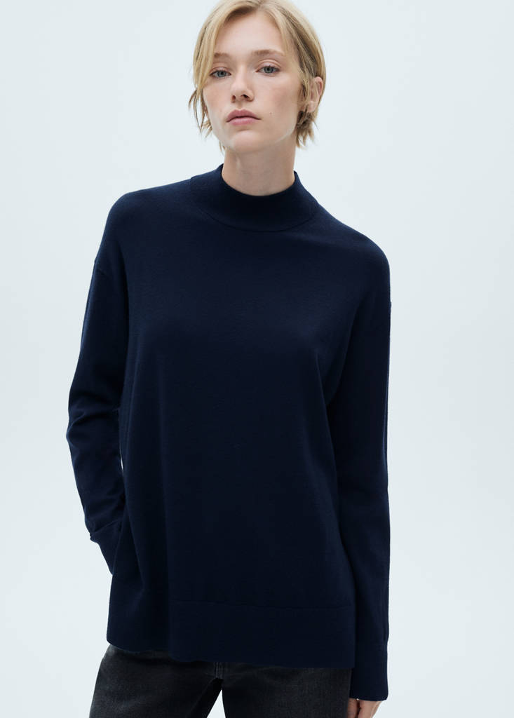 Knitted sweater with perkins neckInitial price struck through [US$ 69.99 ]US$ 69.99Second price struck through [US$ 55.99 ]US$ 55.99Current price [US$ 12.99 ]US$ 12.99-81%Select a colourDark NavyThe model is wearing size S and is 5'11" tall.Select your sizeXXSNot available. I want it!XSLast few items!SNot available. I want it!MNot available. I want it!LNot available. I want it!XLNot available. I want it!XXLNot available. I want it!DimensionsAddFine knit fabric. Straight design. Oversized design. Mock neck. Long sleeves. Ribbed trimsDetails, composition and careStore availability