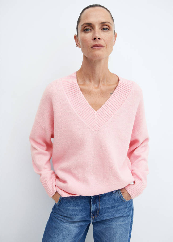 Oversized V-neck sweaterInitial price struck through [US$ 69.99 ]US$ 69.99Current price [US$ 55.99 ]US$ 55.99-20%Select a colourPinkThe model is wearing size S and is 5'10" tall.Select your sizeXXSNot available. I want it!XSNot available. I want it!SNot available. I want it!MNot available. I want it!LNot available. I want it!XLNot available. I want it!XXLNot available. I want it!MeasurementsNotify meChunky knit fabric. Wool mix fabric. Oversize design. Straight design. V-neck. Long sleeves. The gray model is an online exclusiveDetails, composition and careStore availability