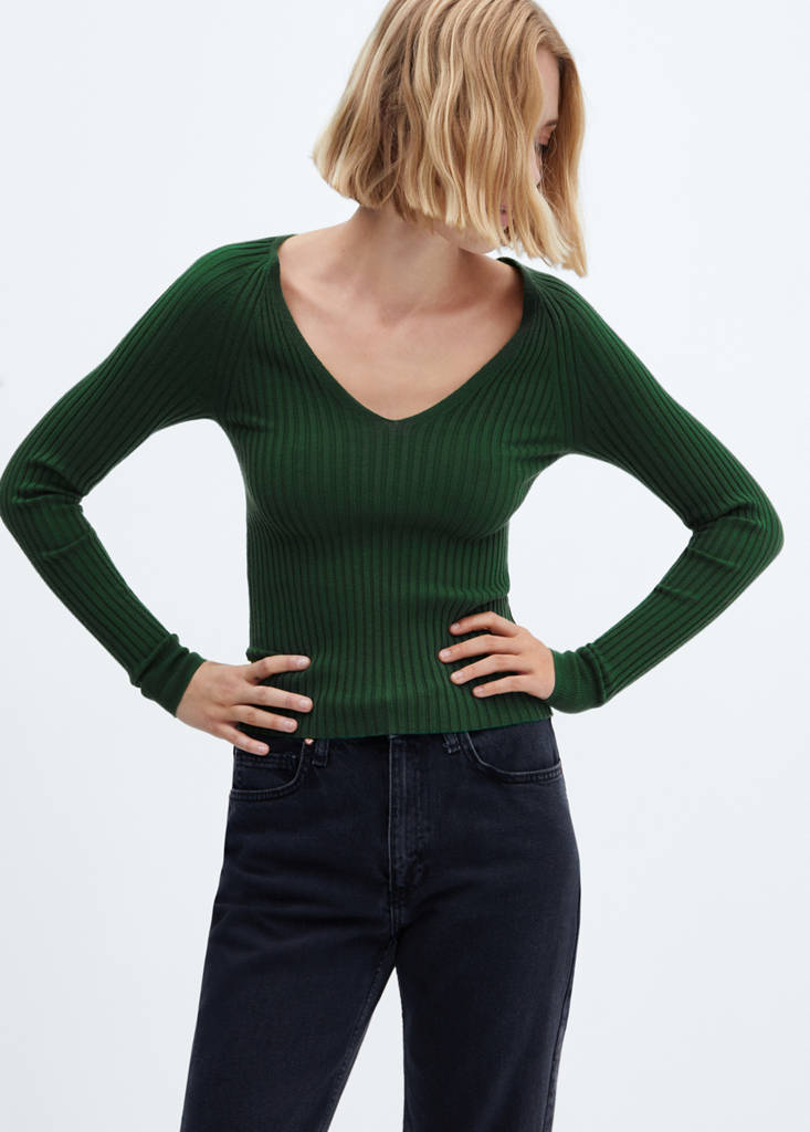 V-neck ribbed knit sweaterInitial price struck through [US$ 45.99 ]US$ 45.99Second price struck through [US$ 35.99 ]US$ 35.99Current price [US$ 9.99 ]US$ 9.99-78%Select a colourGreenThe model is wearing size S and is 5'11" tall.Select your sizeXXSNot available. I want it!XSNot available. I want it!SNot available. I want it!MNot available. I want it!LNot available. I want it!XLNot available. I want it!XXLNot available. I want it!DimensionsNotify meFine knit fabric. Ribbed design. V-neck. Long sleeves. No closure. Available Plus. Office looks. Fitted designDetails, composition and careStore availability