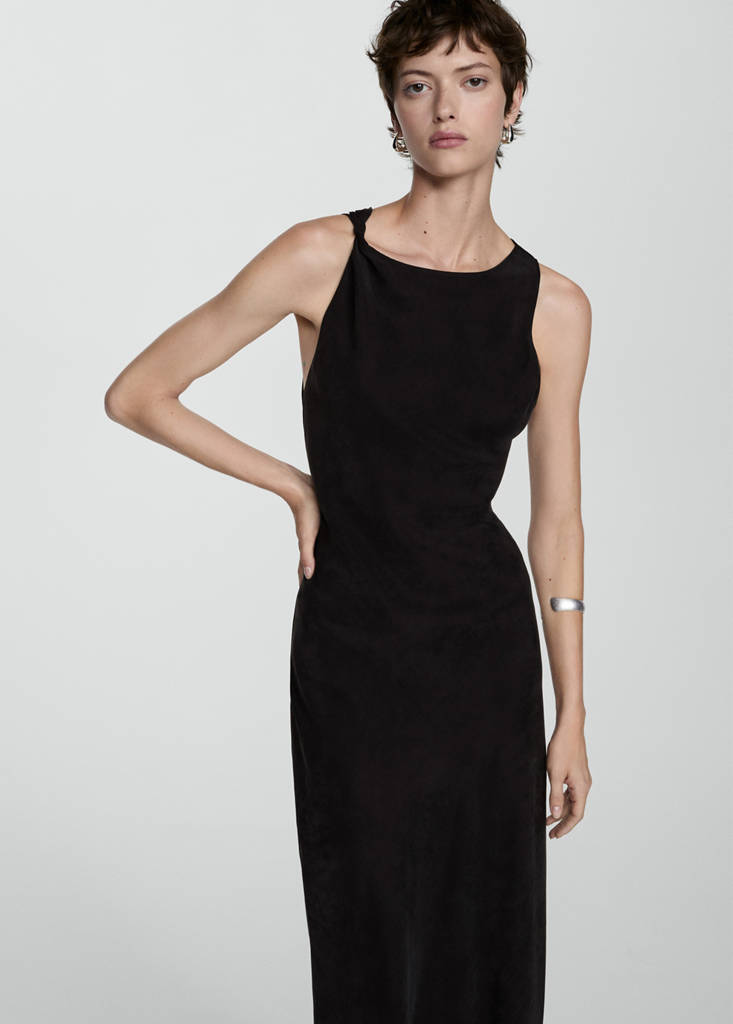 Cupro mix. Long design. Straight design. Round neck. Sleeveless. Wide straps. No closure. Knot detail. Side slit at hem