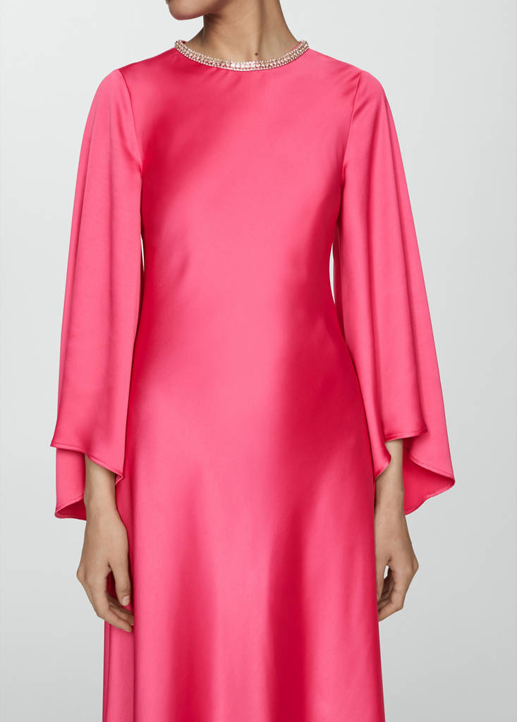 Flared-sleeve satin dressInitial price struck through [US$ 149.99 ]US$ 149.99Current price [US$ 104.99 ]US$ 104.99-30%Select a colourPinkThe model is wearing size 4 (EUR S) and is 5'11" tall.Select your size2 (EUR XS)Not available. I want it!4 (EUR S)Not available. I want it!6 (EUR M)Not available. I want it!8 (EUR L)Not available. I want it!10 (EUR XL)Not available. I want it!DimensionsNotify meSatin weave. Long design. A-line design. Round neck. Long flared sleeve. Invisible back zip fastening. Beaded detailDetails, composition and careStore availability