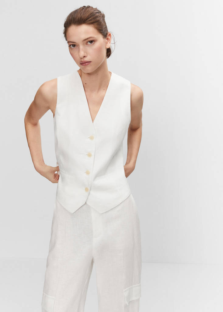 100% linen vestInitial price struck through [US$ 79.99 ]US$ 79.99Current price [US$ 63.99 ]US$ 63.99-20%Select a colourWhiteThe model is wearing size S and is 5'9" tall.Select your sizeXXSNot available. I want it!XSNot available. I want it!SNot available. I want it!MNot available. I want it!LNot available. I want it!XLNot available. I want it!XXLNot available. I want it!Notify me100% Linen. Flowy fabric. Front button closure. Sleeveless. Interior cotton lining. Plus Size Available. Festival SeasonDetails, composition and careStore availability