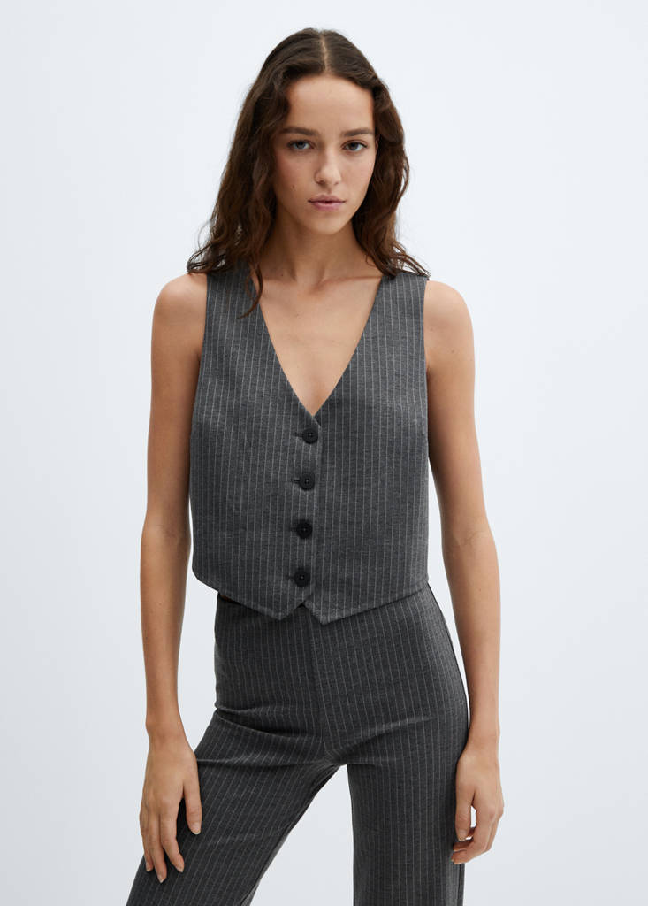 Cropped vest with buttonsInitial price struck through [US$ 49.99 ]US$ 49.99Current price [US$ 39.99 ]US$ 39.99-20%Select a colourGreyThe model is wearing size S and is 5'10" tall.Select your sizeXSNot available. I want it!SNot available. I want it!MNot available. I want it!LNot available. I want it!XLNot available. I want it!Notify meCrop design. V-neck. Wide straps. Straight design. Suit style. Button closure at the front. Total look. Office looksDetails, composition and careStore availability