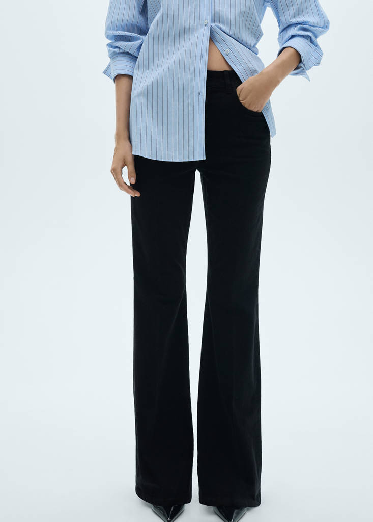 Violeta flared corduroy pantsInitial price struck through [US$ 79.99 ]US$ 79.99Second price struck through [US$ 55.99 ]US$ 55.99Current price [US$ 14.99 ]US$ 14.99-81%Select a colourBlackThe model is wearing size 4 (EUR 36) and is 5'10" tall.Select your size0 (EUR 32)Not available. I want it!2 (EUR 34)Not available. I want it!4 (EUR 36)Not available. I want it!6 (EUR 38)Not available. I want it!8 (EUR 40)Not available. I want it!10 (EUR 42)Not available. I want it!12 (EUR 44)Not available. I want it!14 (EUR 46)Last few items!DimensionsAddCorduroy fabric. Flared design. Long design. Mid-rise. Belt loops. Five pockets. Zip and button closureDetails, composition and careStore availability