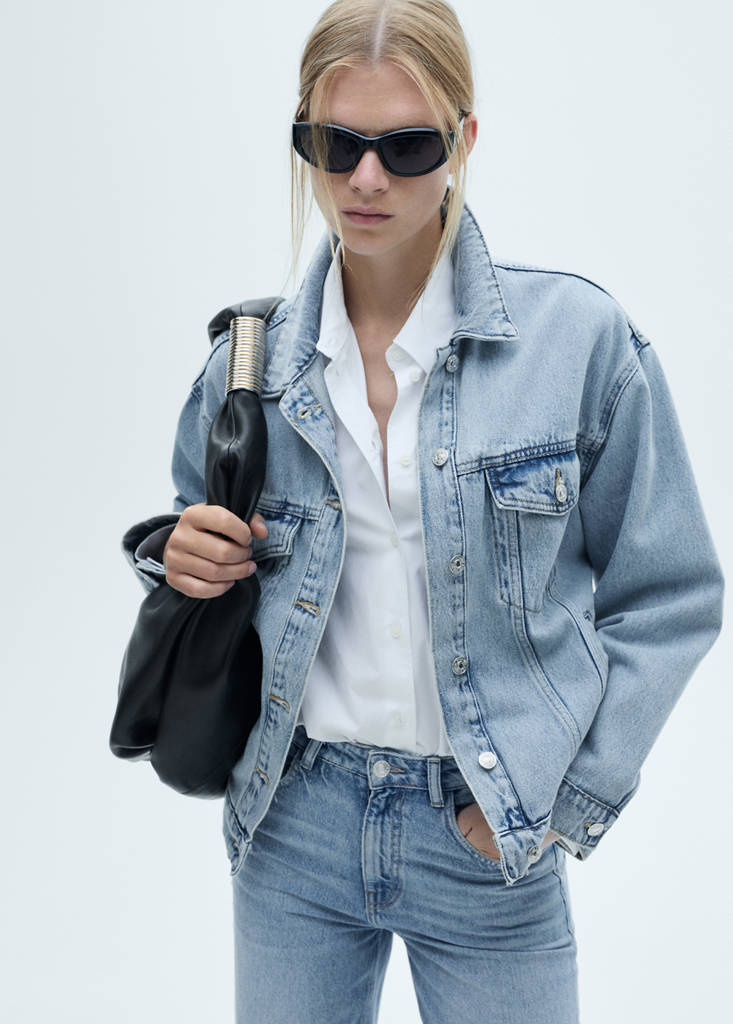 Denim-style cotton fabric. Long design. Wide-leg design. Five pockets. Belt loops. Frayed hem. High-rise. Front zipper and button closure. Inside length 84.5 cm