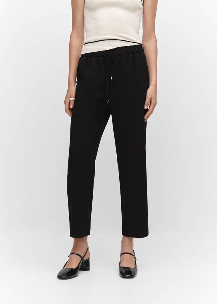 Fluid fabric. Long design. Straight design. Jogger Style. Elastic waistband. Adjustable waist tie. Two side pockets. Available Plus. Elastic band. Knot on the waist