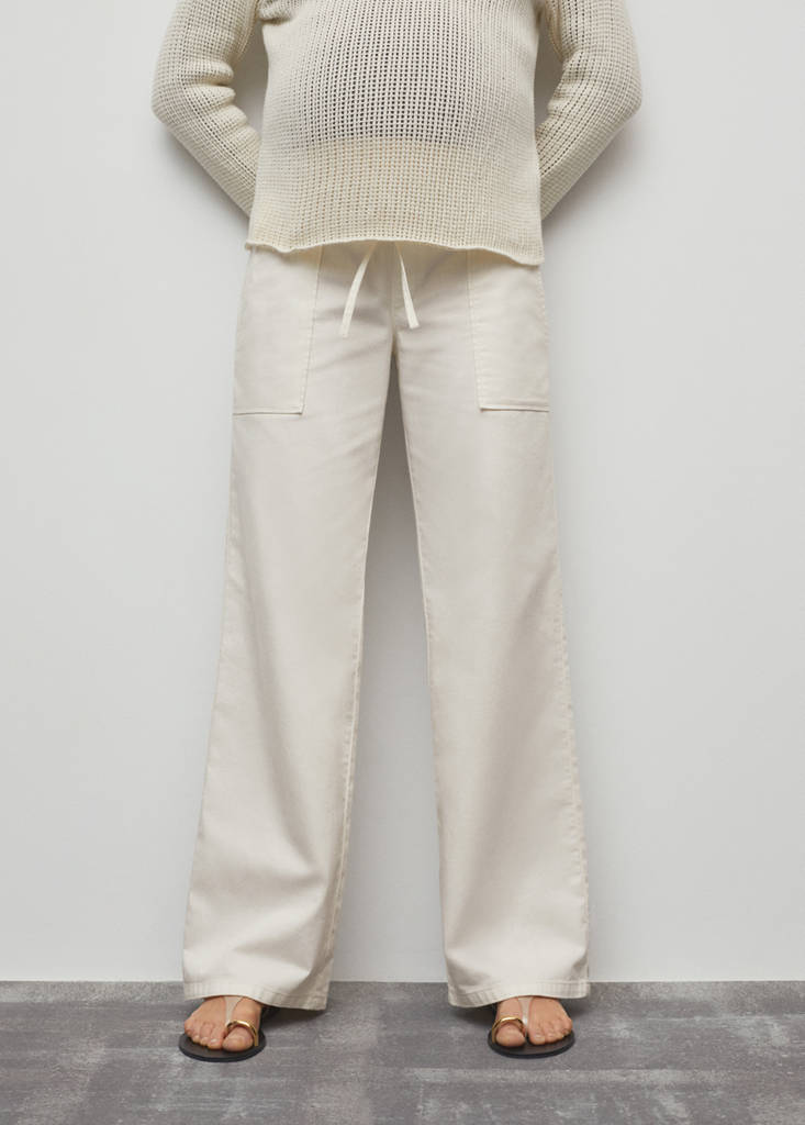 Wide-leg design. Long design. Mid-rise. Two side patch pockets. Elastic waist with tie closure. We recommend you buy your usual size. Provides comfort and freedom of movement. Maternity. 100% cotton fabric
