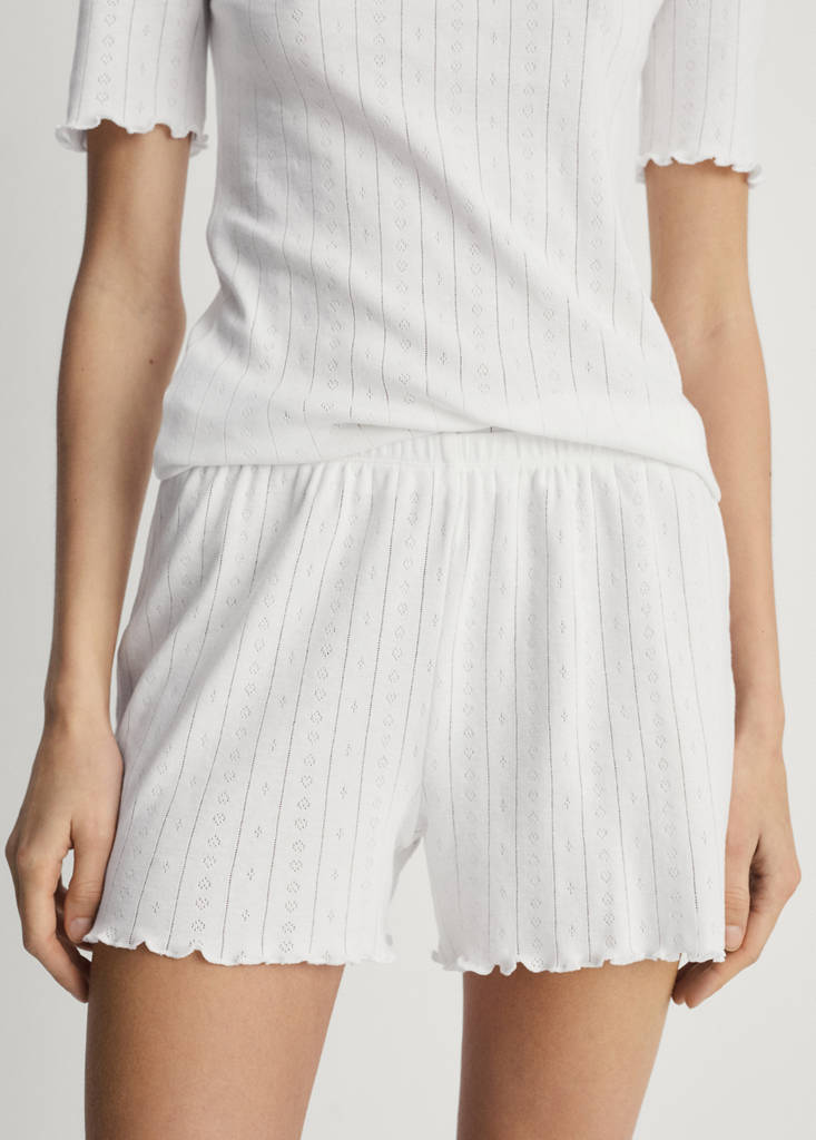 Pajama shorts. 100% Cotton. Provides comfort and freedom of movement. Finished with ruffles