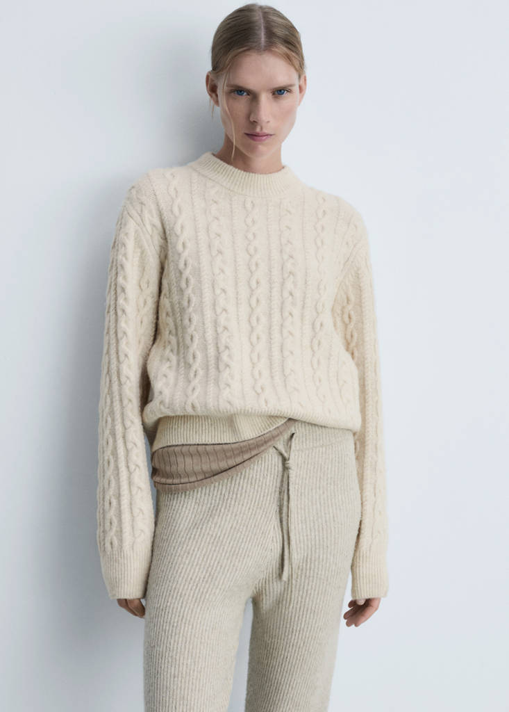 Round-neck braided sweaterInitial price struck through [US$ 89.99 ]US$ 89.99Current price [US$ 62.99 ]US$ 62.99-30%Select a colourEcruThe model is wearing size S and is 5'10" tall.Select your sizeSNot available. I want it!MNot available. I want it!LNot available. I want it!MeasurementsNotify meCable knit. Cable knit design. Round neck. Straight design. Long sleeves. No closureDetails, composition and careStore availability