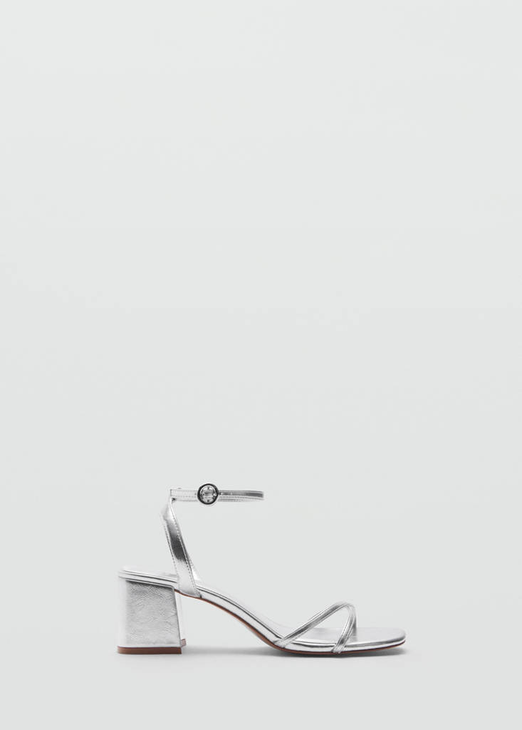Metallic finish. Block heel. Straps design. Ankle bracelet. Buckle closure. Round toe. Party, ceremony, and communion collection. Heel height: 5.5 cm