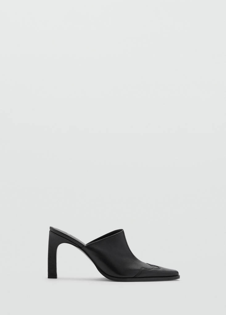 Pointed. Rectangular heel. 2.76 in heel. Sling back. 100% bovine leather