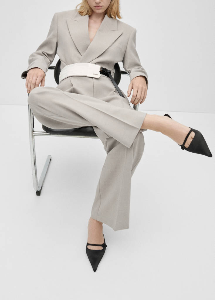 Pointed. Kitten heel. 1.77 in heel. Decorative strap. Selection Collection. Satin weave. Slingback design. No closure