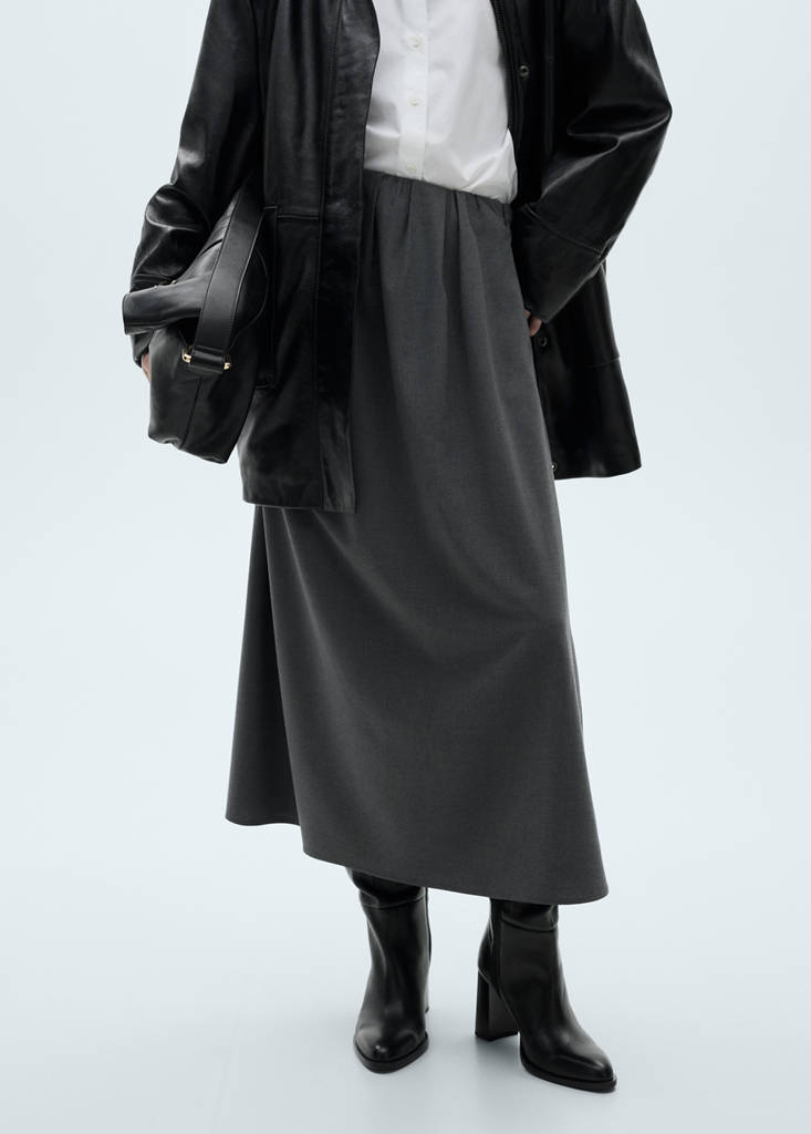 Lightweight fabric. A-line design. Midi design. Invisible side zip fastening. Pleats detail