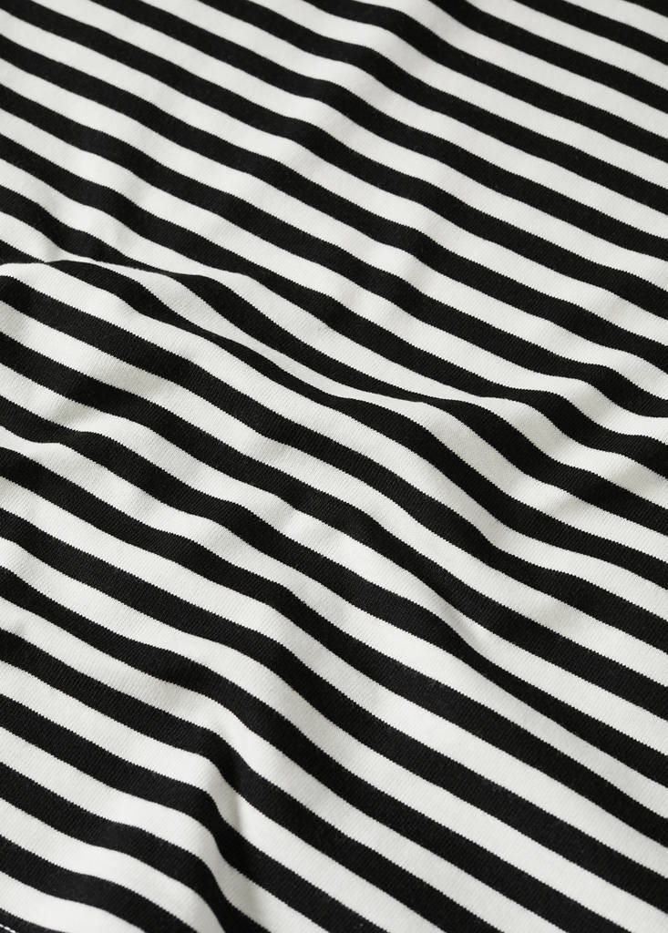 100% cotton fabric. Knitted fabric. Striped print. Straight design. Rounded neck. Short sleeve