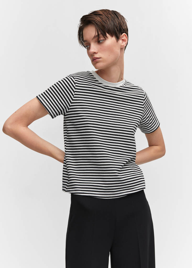 Straight design. Round neck. Short sleeves. 100% cotton fabric. Striped design