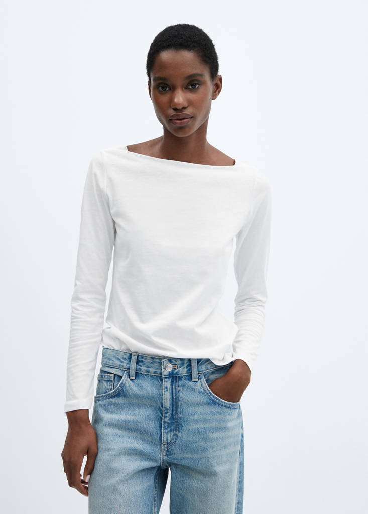 Slim fit. Straight design. Boat neck. Long sleeves. 100% cotton fabric. Available in plain and patterned. Striped print. Available Plus
