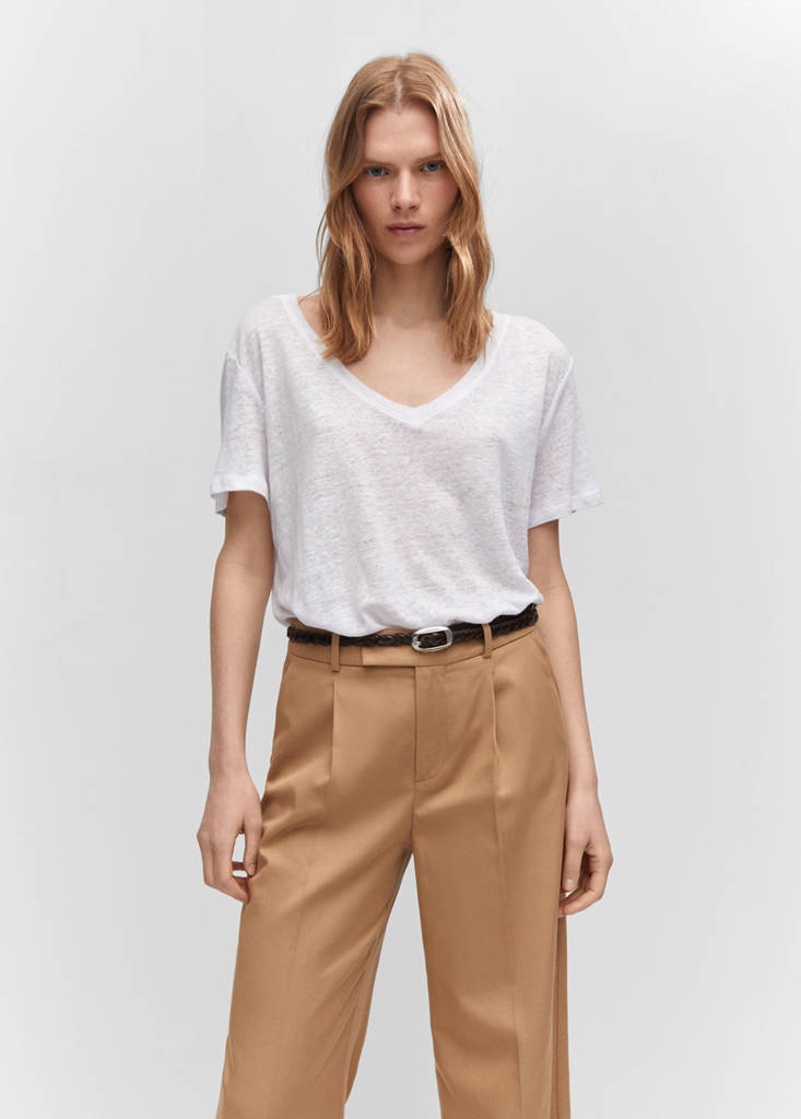 V-neck linen t-shirtInitial price struck through [US$ 45.99 ]US$ 45.99Second price struck through [US$ 31.99 ]US$ 31.99Current price [US$ 8.99 ]US$ 8.99-80%Select a colourWhiteSelect your sizeXXSNot available. I want it!XSNot available. I want it!SNot available. I want it!MNot available. I want it!LNot available. I want it!XLNot available. I want it!XXLNot available. I want it!DimensionsNotify me100% linen fabric. Straight design. V-neck. Short sleeves. No closure. Available Plus. Linen fabricDetails, composition and careStore availability